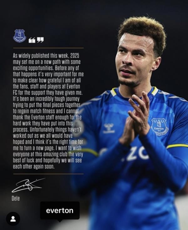 阿里写道:“正如本周大家广泛谈论的那样,2025年我可能会走上一条新的道路,因为有一些令人感到兴奋的的机会。在这一切发生之前,我必须要先明确的表达一下我对于所有球迷的感激之情,以及埃弗顿所有工作人员以及球员对我的支持。